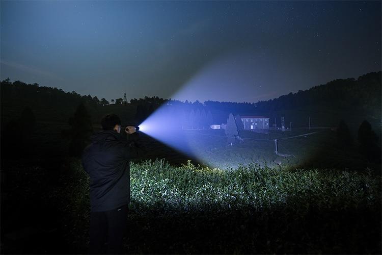 É uma lanterna de última geração, com uma vida útil de 20.000 horas, que gera iluminação de até 42.000 lúmens e sua bateria recarregável pode durar horas de uso.